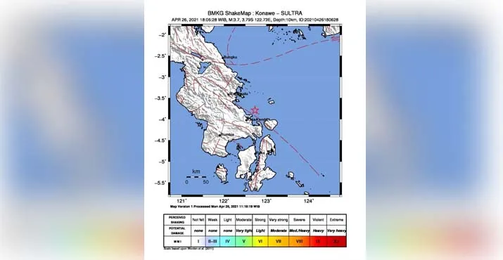 ZONASULTRA.COM,KENDARI – Gempa bumi dengan kekuatan 3,7 Skala Richter (SR) mengguncang wilayah laut Kendari, Sulawesi Tenggara (Sultra) pada Senin (26/4/2021) pukul 19.06 Wita.