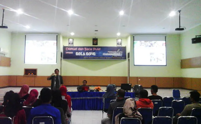 Diskusi dan baca puisi bersama Gol A Gong ini diikuti berbagai komunitas seperti Komunitas Arus UHO, Komunitas Bahasa Kendari, dan sejumlah komunitas mahasiswa lainnya.