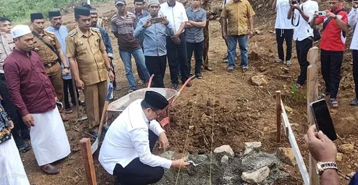 ZONASULTRA.COM, LASUSUA – Kepala Kantor Kementerian Agama (Kemenag) Kabupaten Kolaka Utara (Kolut), Sulawesi Tenggara (Sultra) H. Baharuddin meletakkan batu pertama pembangunan Pondok Pesantren (Ponpes) As’adiya Amirul Mukminin di Desa Waitombo, Kecamatan Lambai, Selasa (8/10/2019).