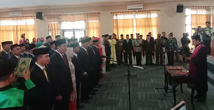 Setelah membacakan sambutan, sebanyak 34 orang dari 35 anggota DPRD langsung diambil sumpahnya dan dilantik langsung oleh Ketua Pengadilan Negeri Andoolo Endra Hermawan. Diketahui satu orang anggota DPRD terpilih tidak bisa mengikuti pelantikan karena sedang menunaikan ibadah haji, dan akan dilantik nanti oleh ketua DPRD definitif.