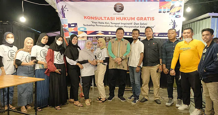 ZONASULTRA.COM, RAHA – Bupati Muna Rusman Emba meresmikan layanan konsultasi hukum gratis di Kopi Rata Kiri, Minggu (27/6/2021).
