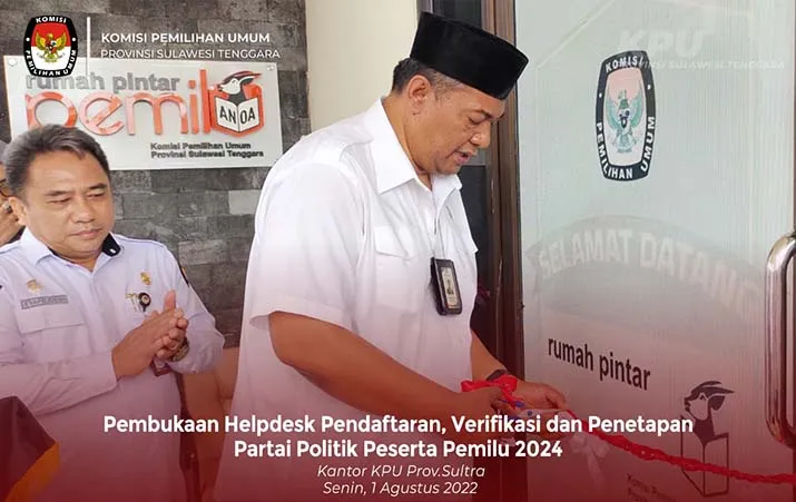 ZONASULTRA.ID, KENDARI- Komisi Pemilihan Umum (KPU) Sulawesi Tenggara (Sultra) menggelar acara pembukaan helpdesk pendaftaran, verifikasi dan penetapan partai politik (parpol) peserta pemilihan umum (pemilu) 2024.