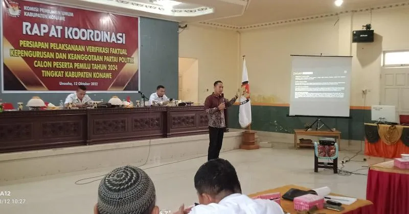 ZONASULTRA.ID, UNAAHA – Komisi Pemilihan Umum (KPU) Gelar Rapat Koordinasi persiapan verifikasi faktual kepengurusan dan keanggotaan Partai Politik (Parpol) calon peserta Pemilu t2024 tingkat kabupaten Konawe pada Rabu (12/10/2022) di Hotel Arisandi.