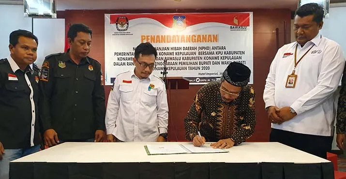 Sebelumnya KPUD Konkep bersama pemerintah daerah setempat telah menandatangani naskah perjanjian hibah daerah (NPHD) di Kendari pada Senin (30/9/2019).