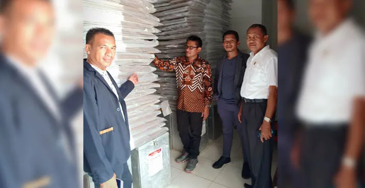 Ketua KPUD Muna, Kubais memastikan puluhan APK Capres dan Caleg Pemilu 2019 kini sudah berada di ruang logistik yang dijaga ketat oleh aparat kepolisian dan TNI.