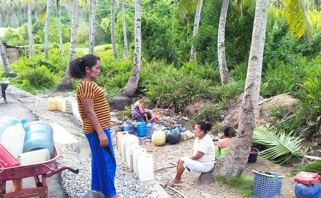 Untuk mendapatkan air bersih, warga di desa tersebut terpaksa harus mencari sumber mata air yang jaraknya sekitar 1 kilometer dari tempat tinggal mereka. Itu pun harus rela antri hingga berjam-jam. Apalagi air dari pipa yang keluar sangat kecil.