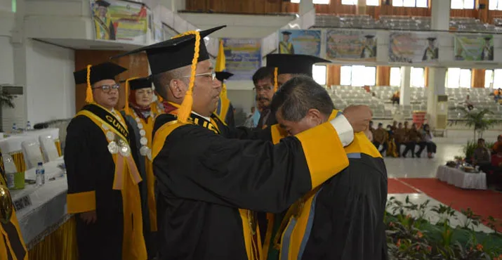 UHO - Pengukuhan dua orang dosen di lingkup Universitas Halu Oleo (UHO) menjadi guru besar menjadi prestasi di penghujung tahun bagi kampus itu. (Sri Rahayu/ZONASULTRA.COM)
