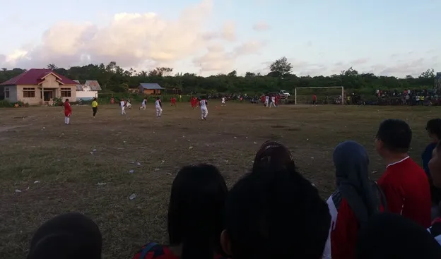 Suasana pertandingan persahabatan sepakbola antara tim Pemda Butur lawan tim DPRD, Selasa (16/8/2016). Pada pertandingan ini disaksikan langsung oleh Bupati Butur Abu Hasan. Darmawan/ZONASULTRA.COM