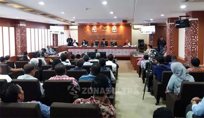 SIDANG – Sidang putusan Dewan Kehormatan Penyelenggara Pemilu (DKPP) memutuskan memberi peringatan keras kepada Komisi Pemilihan Umum (KPU) Kabupaten Bombana, di Ruang Sidang DKPP, di Jalan MH. Thamrin, Jakarta Pusat, Kamis (8/6/2017). (Rizki Arifiani/ZONASULTRA.COM)