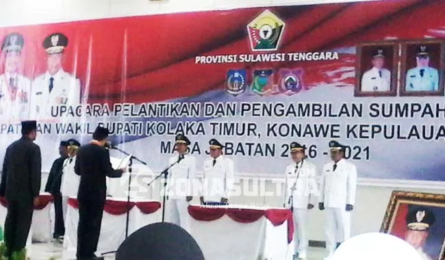 ZONASULTRA.COM, KENDARI– Gubernur Sulawesi Tenggara (Sultra) Nur Alam melantik 3 pasangan bupati dan wakil bupati hasil Pilkada serentak 9 Desember 2015 lalu di aula Gubernur Sultra Gedung Bahteramas Hall, Rabu (17/2/2016).