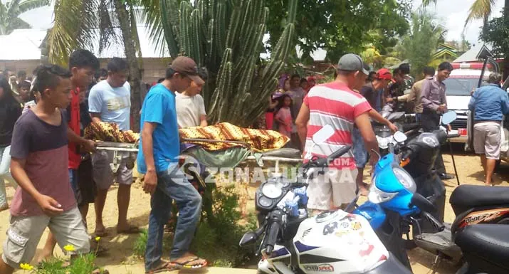 Korban yang bernama Nia (40), tewas dibunuh oleh suami sendiri pada pukul 10:00 WITA pagi tadi. Perempuan dua anak itu tewas saat dirinya baru pulang dari pasar menjual sayur.