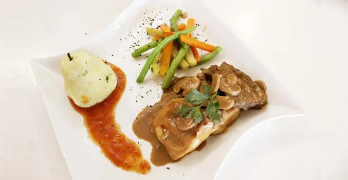 Untuk menyantap menu tersebut akan didampingi dengan aneka sajian kentang dan campuran sayuran segar. Sausnya pun dapat Anda pilih sesuai selera. Sebab, pihaknya menyediakan tiga macam pilihan saus seperti mushroom, lada hitam dan barbeque saus.