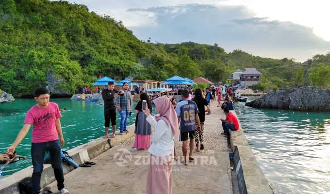 ZONASULTRA.COM, RAHA – Pantai Meleura yang berada di Desa Lakarinta Kecamatan Lohia Kabupaten Muna, Sulawesi Tenggara (Sultra) masih menjadi pilihan masyarakat untuk mengisi waktu libur lebaran bersama keluarga dan sahabat. Ini terlihat dari ramainya pengunjung yang datang ke destinasi wisata yang katanya serupa dengan Raja Ampat di Papua.
