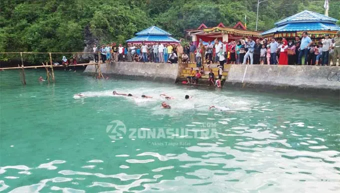 LOMBA RENANG - Pemda Muna menggelar lomba renang antar kepala SKPD di pantai Meleura, desa Lakarinta, kecamatan Lohia, kabupaten Muna, Senin (18/12/2017) sore tadi. (Kasman/ZONASULTRA.COM).