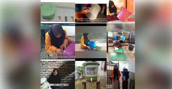 Dengan banyaknya mahasiswa dan berada di tempat KKN yang berbeda-beda maka dosen pembimbing mengajari atau membimbing secara daring. Salah satunya adalah melalui aplikasi telekonferensi, mahasiswa diajar membuat tempat mencuci tangan. Dengan cara demikian, mahasiswa berhasil merancang tempat cuci tangan dengan memanfaatkan bahan-bahan di sekitar mereka.