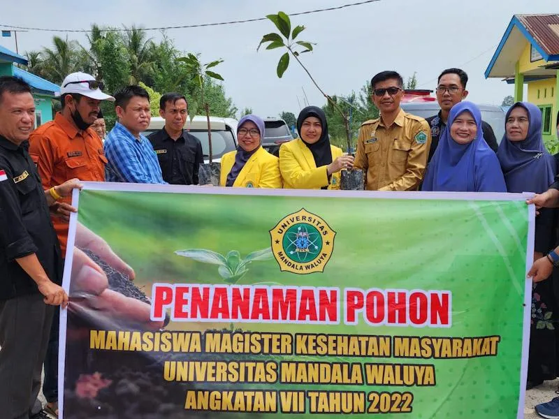 Penanaman bibit pohon produktif dalam kegiatan bakti sosial Prodi Magister Kesmas UMW Kendari.(Istimewa)