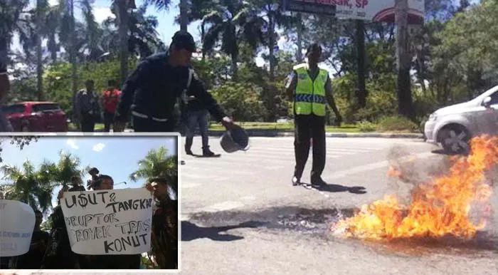 Aksi ini dikawal ketat oleh pihak kepolisian, dan sempat terjadi sedikit ketegangan antara pihak kepolisian dan massa aksi saat salah satu demonstran membakar ban bekas di depan gerbang Kejati namun pihak kepolisian yang dibantu keamanan dari kejaksaan sigap memadamkan api tersebut. (B)