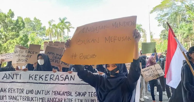 Sebelumnya, mahasiswi Fakultas Keguruan dan Ilmu Pendidikan (FKIP) UHO inisial RN (20) diduga telah dilecehkan seorang oknum dosen berinisial B. Menurut korban, pelecehan seksual tersebut sudah dialaminya sebanyak dua kali, dengan tempat kejadian yang sama. Oknum dosen bergelar profesor itu memaksa mencium beberapa bagian wajah korban. (B)