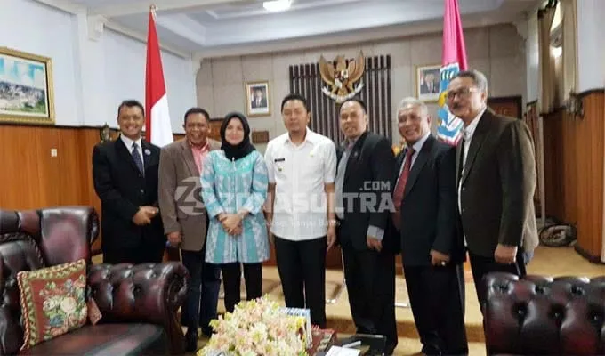 KUNJUNGAN PHRI – Wali Kota Kendari Adriatma Dwi Putra (baju putih) saat menerima kunjungan pengurus PHRI Sultra yang di ketuai Hugua (kedua dari kiri) di ruangannya, Rabu (22/11/2017). PHRI Sultra berharap Pemerintah Kota (Pemkot) Kendari dan PHRI dapat bersinergi dalam memajukan pariwisata di Kota Kendari. (Foto Istimewa)