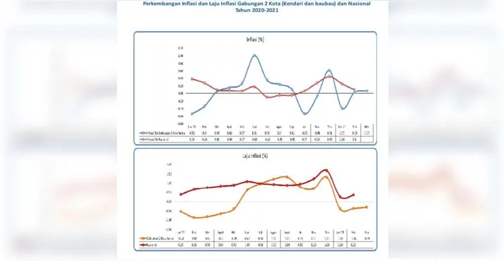 ZONASULTRA.COM, KENDARI – Badan Pusat Statistik (BPS) Provinsi Sulawesi Tenggara (Sultra) merilis inflasi gabungan dua kota Index Harga Konsumen (IHK) di Sultra Sebesar 0,07 persen. Terlihat, Selama Maret 2021 inflasi terjadi di Kota Kendari.