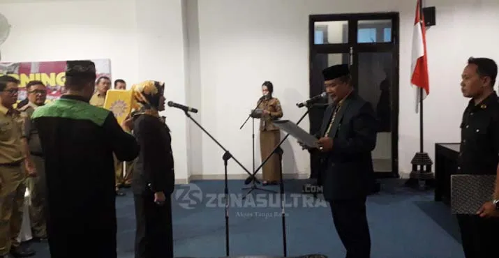 ZONASULTRA.COM, UNAAHA – Jabatan Pejabat (Pj) Sekretaris Daerah (Sekda) Pemerintah Daerah (Pemda) Kabupaten Konawe, Sulawesi Tenggara (Sultra) Asriani Porosi selama tiga bulan pertama telah berakhir pada awal September 2018 lalu. Namun masa jabatan Pj Sekda kembali diperpenajang untuk tiga bulan kedepan. Perpanjangan jabatan Sekda dilakukan di gedung Inowa Pemda Konawe, Senin (10/9/2018) oleh Pj Bupati Tasman Taewa yang disaksikan Ketua DPRD Ardin dan sejumlah Kepala Satuan Kerja Perangkat Daerah (SKPD) setempat.