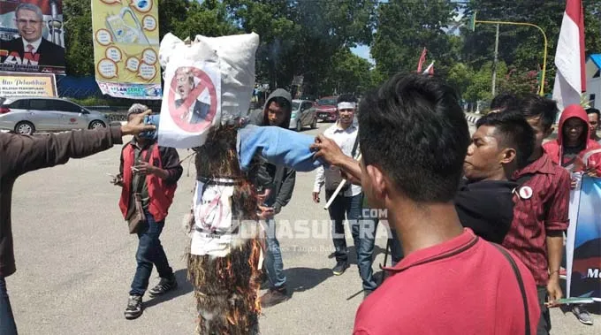 Massa Bela Palestina di Kendari Bakar Boneka Donal Trump