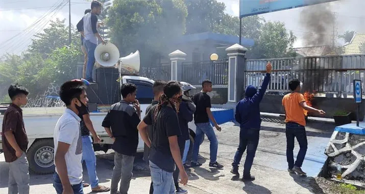 ZONASULTRA.COM, KENDARI – Aksi lempar kotoran sapi dan telur busuk, warnai unjuk rasa yang di lakukan oleh belasan massa yang tergabung dalam forum pemuda dan mahasiswa kota Kendari, di kantor Imigrasi Kendari, Selasa (7/7/2020).