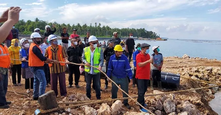 Kesempatan ini, Pemkab Busel memberikan kado istimewa dengan menghadirkan pembangunan salah satu akses vital masyarakat dengan meletakkan tiang pancang pelabuhan rakyat Bandar Batauga oleh Bupati Buton Selatan, H. La Ode Arusani, Jumat (23/7/2021).