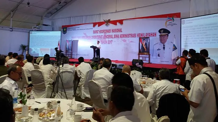 Sosialisasi Kebijakan Direktorat Jenderal Bina Administrasi Kewilayahan Tahun 2017 yang diadakan di The Sultan Hotel, Rabu (10/5/2017).