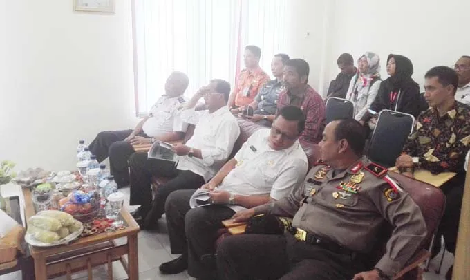KUNKER MENHUB - Menteri Perhubungan (Menhub) Budi Karya Sumadi (kedua dari kiri) bersama Wakil Gubernur Sulawesi Tenggara (Sultra) Saleh Lasata (ketiga dari kiri), Dirjen Perhubungan Laut A. Tonny Budiono (pertama dari kiri) dan Kapolda Sultra Andap Budhi Revianto, saat berkunjung ke Kantor KSOP Kelas II Kendari dalam rangka kunjungan kerja Menhub di Kendari. (RAMADHAN HAFID/ZONASULTRA.COM)