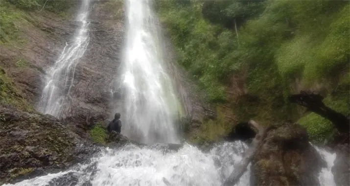 Namun begitulah, pada air terjun kedua ini kami dibuat terpana. Menyaksikan air yang jatuh menyusuri tebing hitam dari ketinggian kurang lebih 100 meter.