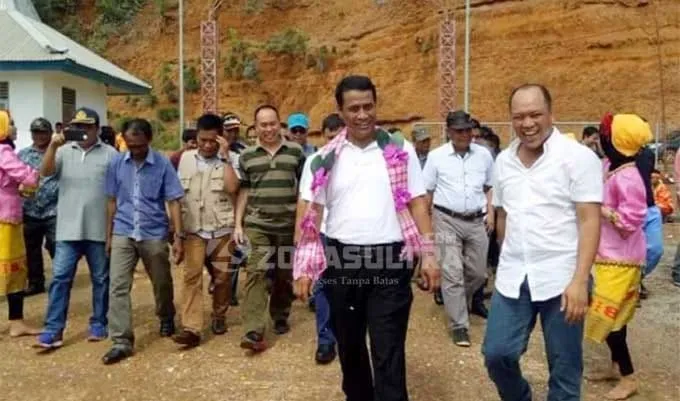 MENTAN RI – Menteri Pertanian, Amran Sulaiman didampingi Bupati Konut, Ruksamin saat melakukan kunjungan kerja di Konawe Utara dengan menggunakan helikopter 2/12/2017. (Jefri/ZONASULTRA.COM).