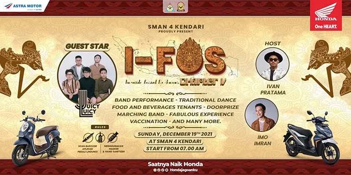 Manager Marketing Astra Motor Sulsel untuk wilayah Sultra dan Ambon Adrian Arlim mengatakan, hadirnya Honda pada gelaran IFOS 2021 ini merupakan wujud dukungan kami terhadap kegiatan seni dan musik anak muda di Kendari.