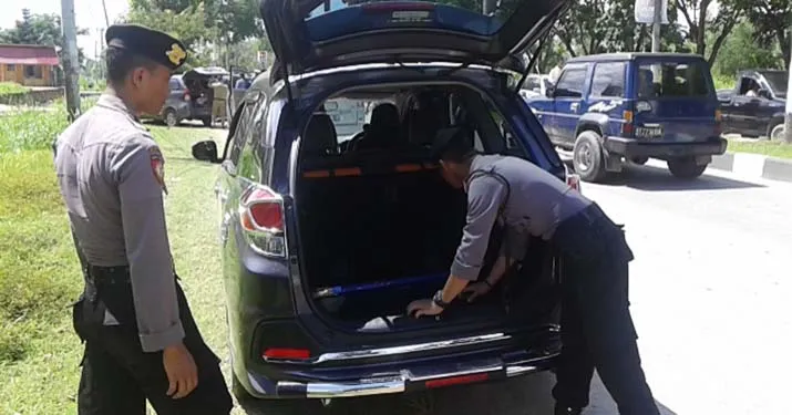 Dalam razia itu, polisi terlihat memeriksa seluruh bagian mobil ataupun kendaraan roda dua yang melintas.
