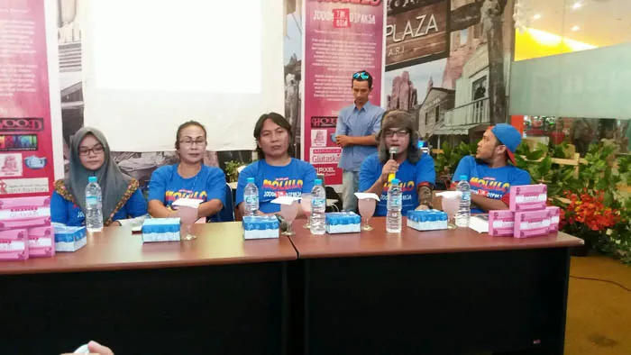 Konferensi Pers : Salah satu film karya anak lokal Film Molulo yang di Sutradarai oleh yang masih berdarah Sulawesi Tenggara Irham Acho Bahtiar (Tengah) dan para kru dan pemain film ini, terlihat saat mengadakan konferensi pers yang dilaksanakan di lantai 3 Lippo Plaza, Sabtu (7/1/2017) sore. (Kasman/ZONASULTRA.COM)