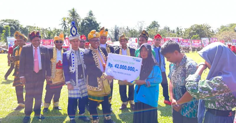 Dalam penyerahan santunan BP Jamsostek kepada enam ahli waris imk selain Pj Bupati Mubar, Bahri, turut pula anggota DPR RI, Hugua, Ketua DPRD Mubar, Sitti Sariani Illaihi, mantan Bupati Mubar, Achmad Lamani, perwakilan dari Pemprov Sultra dan anggota DPRD Sultra. Turut didampingi Kepala BP Jamsostek Sultra dan seluruh pimpinan Forkopimda Mubar. (B)