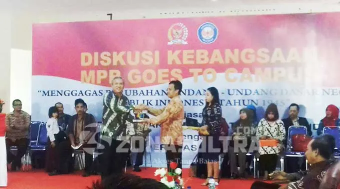 ZONASULTRA.COM, KENDARI – Majelis Permusyawaratan Rakyat (MPR) RI bekerjasama dengan Universitas Halu Oleo (UHO) Kendari, Sulawesi Tenggara (Sultra) menggelar diskusi kebangsaan MPR Goes To Campus di Fakultas Hukum UHO, Senin (10/10/2016). Dalam diskusi ini, peserta membahas tentang gagasan perubahan UUD 1945 untuk mengumpulkan pendapat guna menciptakan hukum ketatanegaraan yang lebih baik.