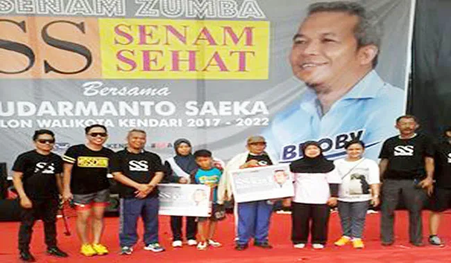 Senam sehat berhadiah itu di selenggarakan oleh Sahabat Sudarmanto (SS), tim pemenangan bakal calon walikota Kendari, Sudarmanto.