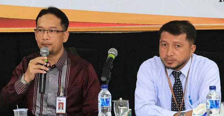 OJK SULTRA - Muhammad Fredly, Kepala OJK Sultra Nasution dalam acara konferensi pers, Senin (16/7/2018) di Kantor Learning Center OJK Sultra. (Ilham Surahmin/ZONASULTRA.COM)