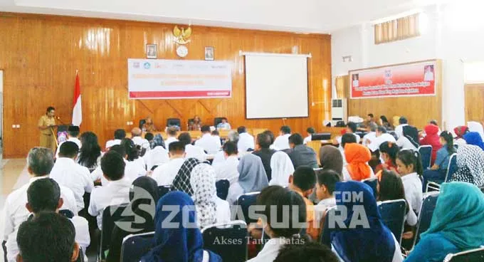 Sosialisai OJK : Sosialisasi pengenalan investasi keamanan keuangan dan literasi keuangan ini diselenggarakan di Aula BAPPEDA Butur Rabu (3/8/2016), dihadiri wakil Bupati Butur Ramadio,sekda,kepala OJK Sultra,direktur kepatuhan Bank Sultra,pimpinan Bank Sultra cabang Butur,para SKPD,masyarakat,para guru serta pelajar. (Foto : Darmawan/ZONASULTAR.COM)