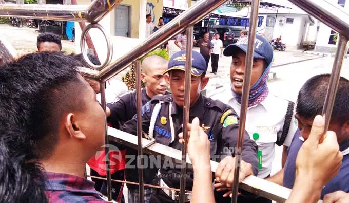 ZONASULTRA.COM, KENDARI – Puluhan pendemo bersitegang dengan pihak keamanan Kantor Wilayah (Kanwil) Kementrian Agama Provinsi Sulawesi Tenggara.