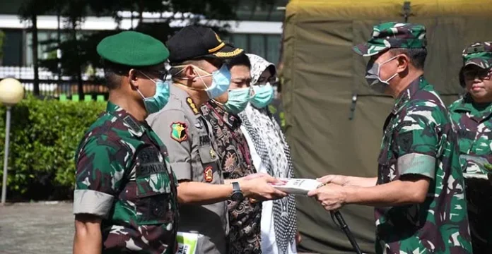 ZONASULTRA.COM,KENDARI- Pangdam XIV/Hasanuddin Mayjen TNI Andi Sumangerukka secara simbolis menyerahkan Alat Pelindung Diri (APD) untuk menangani virus corona ke beberapa rumah sakit yang ada di Sulawesi. Dua rumah sakit di Sulawesi Tenggara (Sultra) yang menjadi rujukan penanganan Covid-19 turut kebagian bantuan ini.