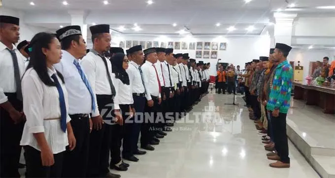 ZONASULTRA.COM, RAHA – Panitia pengawas pemilu (Panwas) Kabupaten Muna resmi melantik 150 orang pengawas pemilu lapangan (PPL) desa dan kelurahan di Galampano Rujab Bupati Muna, Kamis (18/1/2018).