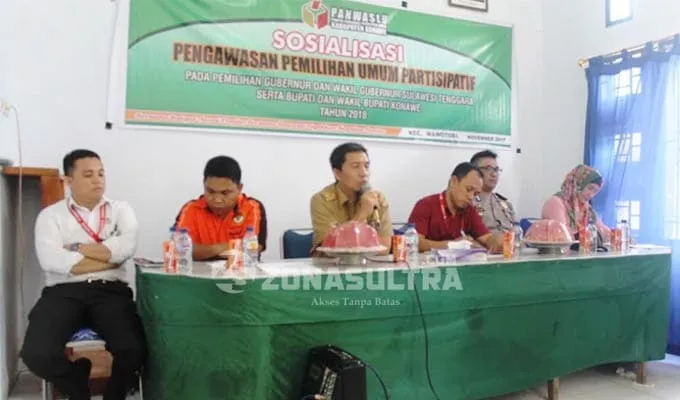 ZONASULTRA.COM, UNAAHA – Panitia Pengawas Pemilu (Panwaslu) Kabupaten Konawe, Sulawesi Tenggara (Sultra) menggelar sosialisasi pengawasan partisipatif dengan mengajak keterlibatan seluruh elemen masyarakat untuk mengawasi jalannya proses penyelenggaraan Pemilihan Kepala Daerah (Pilkada) dan Pemilihan Umum (Pemilu).