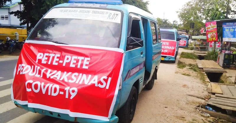ZONASULTRA.COM, KENDARI – Mobil angkutan umum yang dikenal dengan nama pete-pete oleh masyarakat Kota Kendari Provinsi Sulawesi Tenggara (Sultra) turut serta dalam menyukseskan program vaksinasi Covid-19.