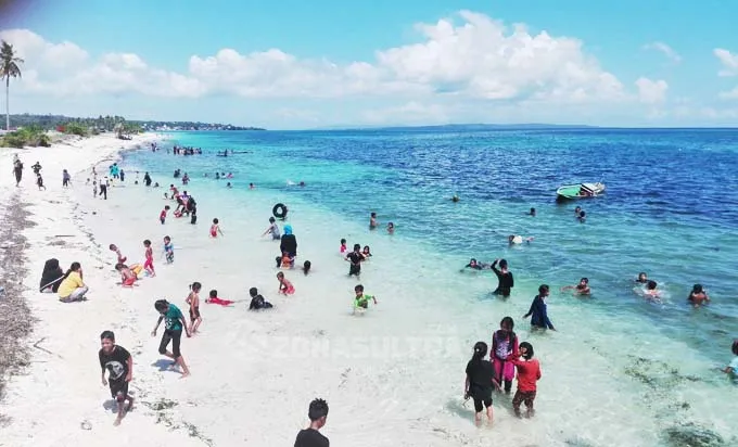 ZONASULTRA.COM, LABUNGKARI – Dari jauh, hamparan pasir putih berkilau berpadu dengan warna merah jambu, bak mutiara disinari matahari. Hembusan angin sepoi-sepoi begitu terasa saat berada di pantai yang indah ini. Lautnya tenang, dengan gulungan ombak yang datang perlahan.
