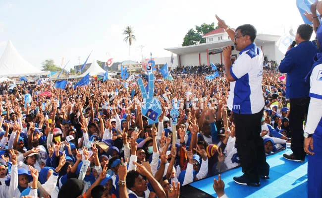 Kampanye akbar Arhawi ini dihadiri ribuan pendukung dengan menggunakan atribut baju warna biru langit. Mereka berdatangan dari berbagai pulau-pulau yang ada di daerah itu.