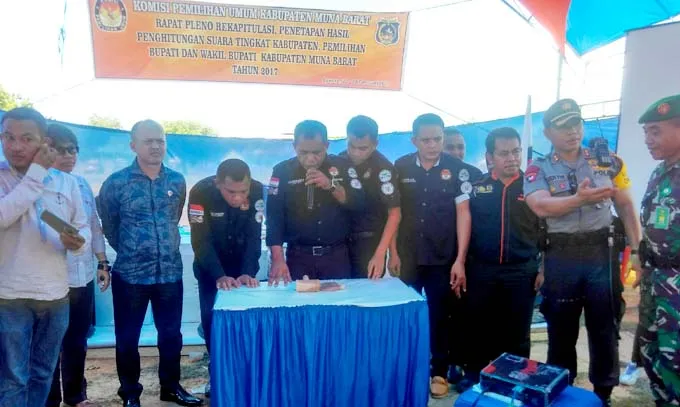 ZONASULTA.COM, LAWORO – Komisi Pemilihan Umum Daerah Kabupaten Muna Barat (Mubar) menetapkan pasangan calon (paslon) LM. Rajiun Tumada – Achmad Lamani ( Rahmat ) sebagai pemenang dalam Pilkada Mubar. Penetapan Paslon Rahmat sebagai pemenang diputuskan dalam Rapat Pleno Rekapitulasi Penetapan Hasil Perhitungan Suara yang digelar Rabu (22/2/2017) di Kantor KPUD setempat.