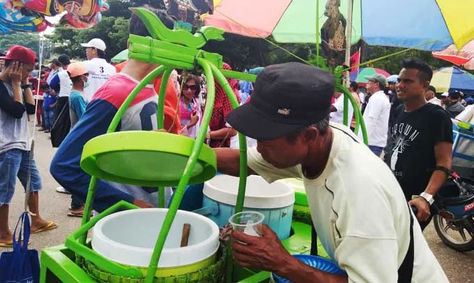 PEDAGANG ES : Salah satu pedagang es dawet yang melayani pembeli (pendukung calon) di Kampanye Akbar Pilkada di Tugu Religi Sultra, Jumat (10/2/2017). (Sitti Nurmalasari/ZONASULTRA.COM)