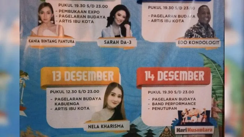 Mereka adalah Nella Kharisma, Kania Bintang Pantura, Sarah D’Academy-3, Edo Kondologit, dan band lokal yang akan mengguncang panggung Hari Nusantara mulai 11-14 Desember 2022 di Lapangan Merdeka Wangiwangi.